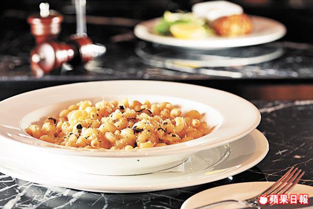 先用五種芝士煮好通心粉,加上松露油和即磨鮮松露。通心粉入口creamy,滿口芝士的香濃味。