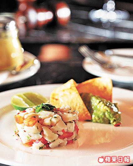 日本帶子刺身先用青檸汁醃,再以tequila酒、番茄醃,帶子新鮮爽口,酸甜開胃。