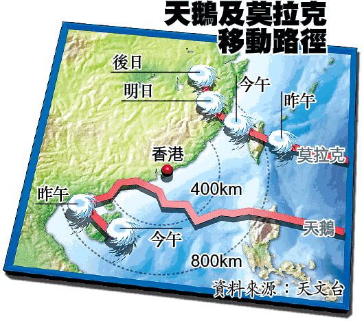 天鵝和莫拉克昨日相距縮至約1,000公里,出現藤原效應。天文台高級科學主任莫慶炎指出,天鵝和莫拉克繞着同一中心旋轉,由於莫拉克比天鵝大,「軸心好接近莫拉克,結果天鵝好似月球繞着地球咁,繞住莫拉克轉。」天鵝會反時針方向,向東進入南海。天文台科學主任李炳華補充說,今日會較清楚天鵝的發展。