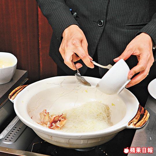 除了齊齊食,何利利與楊振耀還親自落場炮製一道堂弄鮮蟹肉桂花米粉,來招呼Tanya。