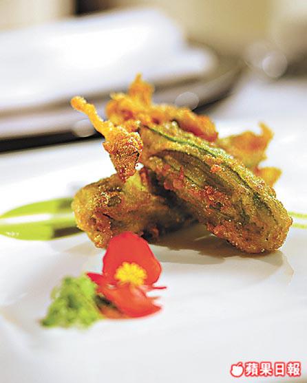 將龍蝦及芝士釀入意大利水瓜花,外層炸得香脆,內裏鮮味,香氣四溢。