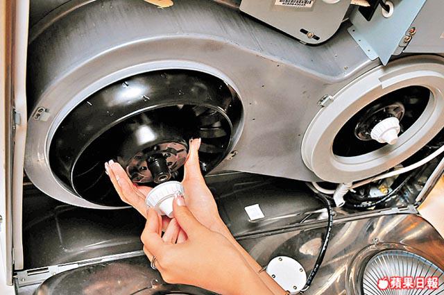 除出油杯後,打開面板,然後按住扇葉扭開螺絲,扇葉便自動脫下。