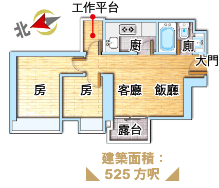 建築面積:525方呎