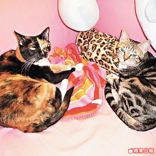 他們收養了一對小兄妹,基基和FunFun,一歲多,手腳幼長,行起來真如天橋上的名模,一對綠色的貓眼帶點高傲。「你看,牠們的毛又短又軟,最愛躺在你的肩膊上,然後用手腳圍着你的頸,好似一條圍巾。」所以,又叫圍巾貓,心姐最搞笑:「毛毛又靚又舒服,遠看似是一塊名貴的貂皮!」一貓多用,不錯。可惜是,正值夏季,兩貓脫毛得厲害:「唉,我們都不敢穿黑及藍等以外的深色衣服,怕看到全身是毛!」每隔五分鐘,兩母女常要揉揉鼻,甚至要用紙巾抹走臉上的毛毛,看來夏天不宜抱貓。
