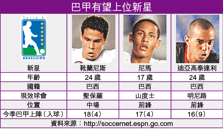 巴甲一向為南美球星搖籃,羅賓奴、泰維斯等名將後,基利臣、拉美利斯等今夏亦登陸歐洲;現時仍不乏新星效力巴甲球隊,包括聖保羅中場靴蘭尼斯。
