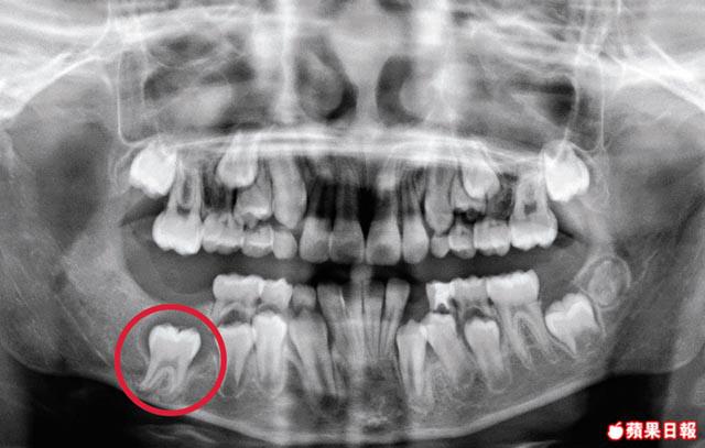 今年42歲的張女士,因右下顎有兩顆大牙「鬆鬆哋」求診,檢查後發現一直沒有長出來的右下顎智慧齒,有一個約五厘米的腫瘤,更侵蝕附近兩顆大牙的牙腳,導致鬆脫,需全身麻醉除去智慧齒、腫瘤及附近兩顆大牙。
