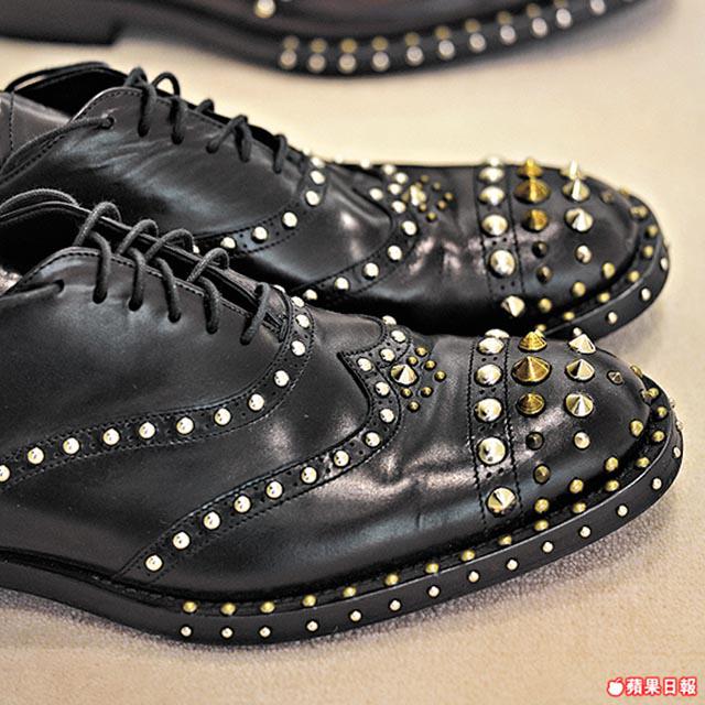 Y︰「我諗係各人喜好啦,但係我諗最平易近人,大部份人都接受到而又有少少唔同嘅嘢,應該係呢個Collection幾對有窩釘嘅鞋,任何一個男仔都可以享受到。即係譬如話有啲人唔鍾意着長褸唔鍾意周身都係皮,有啲人覺得周身窩釘閃得滯嘅,之但係有一對正正經經嘅皮鞋,又有一啲窩釘喺上面,有啲亮點,我覺得會喺穩陣之中帶一點趣味,我覺得呢樣幾老幼咸宜。」