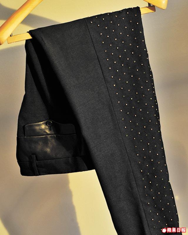 Y︰「我覺得阿姐行緊運啦!呢幾年無論男裝女裝都好似唔使嘥力,撩幾筆就已經做咗個又靚又好容易着嘅Collection。今季這個窩釘系列都係其中一個行緊運嘅系列,我個人基本上嚟講,一有窩釘就坐底有60分底分。但其實窩釘都流行咗好多年,亦有很多人做過,要做一啲我未見過嘅嘢亦都唔容易。我自己都是一個幾難取悅的消費者,因為年資都有咁上下耐,但呢個系列最吸引我亦最有趣嘅地方,就係用窩釘釘喺一啲傳統西裝嘅衣料上面,而唔係我哋平時想像到嘅皮料或軍褸質地。即係用一啲Punk嘅衫,與傳統男裝嘅西服,放入攪拌機,攪混咗就出咗呢批衫。」