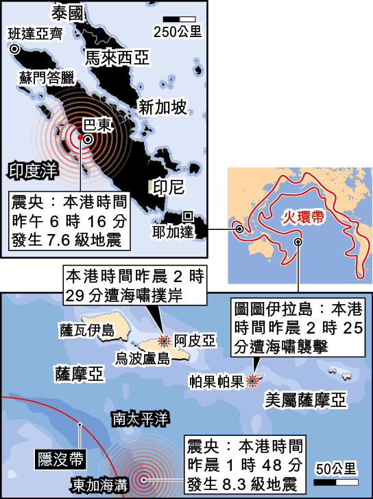 薩摩亞群島和印尼昨天先後發生大地震,前者更引發海嘯