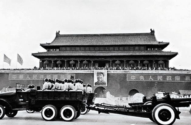 中共初奪大陸,戰亂未平,慶典較簡樸,僅閱兵,無聯歡活動;30萬人參加