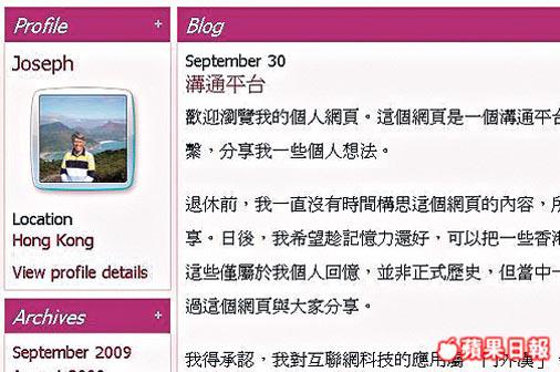 告別金管局總裁職位、告別每周一篇的《觀點》,任志剛退任後,便失去一個與公眾溝通交流的平台。昨日他公開表示,近期已籌備一個網址,希望退休後可繼續與各界保持聯繫,分享一些個人想法。