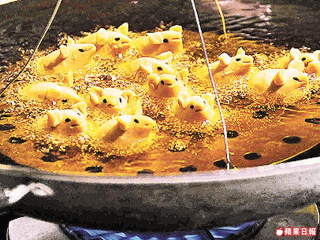 5.將小松鼠放炸架上,放入100至120℃的熱油中炸至金黃色,盛起瀝乾油。