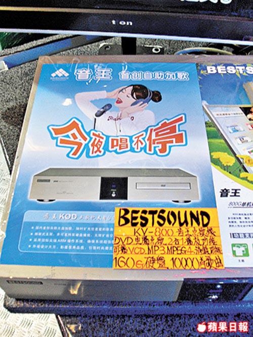 【本報訊】「五萬隻歌、任試任揀!」海關首次揭發有店舖出售預載了侵權歌曲及電影的卡拉OK播放機,關員日前「放蛇」,購得涉嫌侵權的卡拉OK播放機,其中一款以硬碟貯存了兩萬多首侵權歌曲,另一款更以光碟形式載有五萬首侵權歌曲,並標榜「今夜唱不停」及附送「歌書」。海關在深水埗四間音響店共拘捕七名職員及東主,撿獲30部預載了涉嫌侵權歌曲的卡拉OK機。被捕各人調查後獲准保釋。記者:劉柏麟
