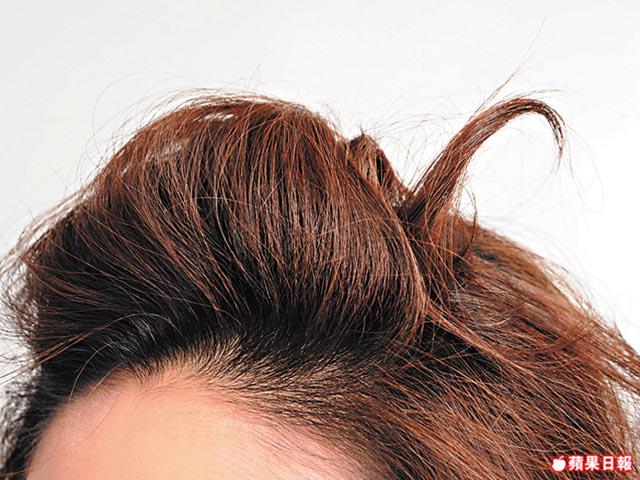 2用粟米夾將頭頂髮根夾成Zig-Zag,令頭髮看來蓬鬆。