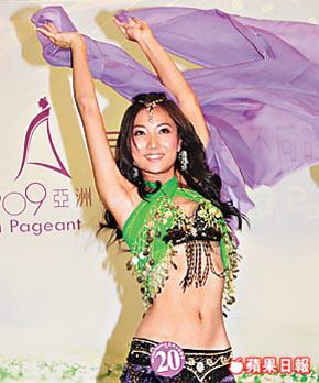 【第21屆亞姐--肉光四射】《2009亞洲小姐競選》參賽佳麗連日以性感姿態現身,豐滿身材成為焦點,昨日各佳麗身穿自備服飾作才藝表演,三位來自台灣佳麗齊齊谷胸,參賽者性感舞衣露胸墊露底樣樣齊,15號號許瑩表演華爾茲舞蹈時不慎露粉紅底兼露毛,但仍無損雅興,照樣勇奪《最佳才藝獎》冠軍。