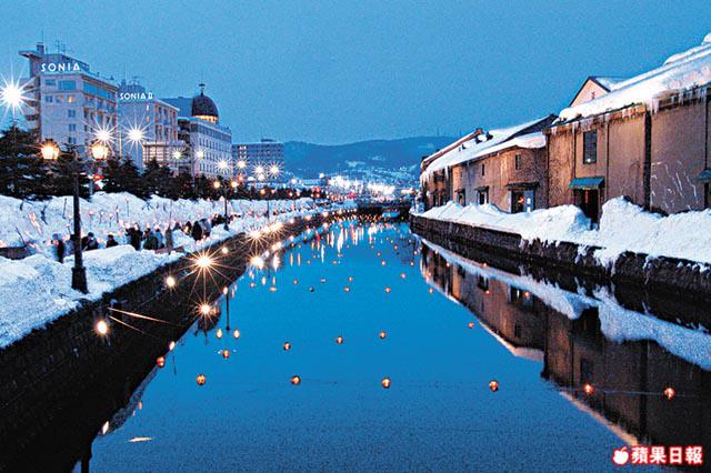溫馨提示:冬天小樽景色優美,2月時分當地人更會在運河上串起點上燭光的玻璃燈,儼如雪祭。