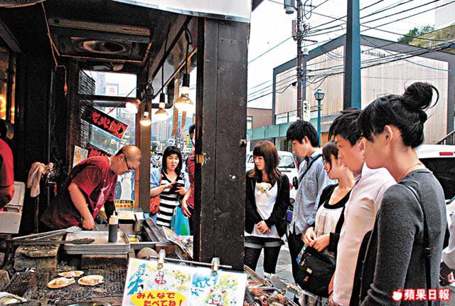 「海貓屋」樣樣好,惟獨價錢太高!幸好小樽有大量海鮮,平貴食法,豐儉由人!走在街上,早有一陣炭燒香吸引着我,再看香味元凶的小攤前一條長人龍,原來路人正圍着一食檔,檔主正在炭燒帆立貝、螺、蠔!當中,粉盒般大的小樽原產帆立貝,一隻只需約$16!即叫即洗即燒,火候剛好不會老,帆立貝滲出的海鮮汁,配以老闆自製微甜燒汁,那一口湯,才是精髓!蠔是產自厚岸的肥蠔,不及熊本蠔甜,卻多了一層海水鹹香!最有趣的是燒好後,老闆遞上一個鐵盤一雙筷子,麻煩你對着馬路食,頗有大牌檔豪邁風味。