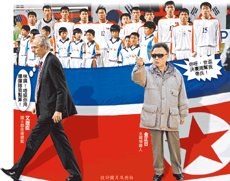 「鐵幕國家」北韓繼1966年之後,再度打入南非世界盃決周賽,唔好以為呢個國家一窮三白,為咗國家光榮,又嫌現任教練金正勛保守得滯,最近就開始搵國際級教頭帶隊踢決賽周,一度傳出搵家喺英乙諾士郡做緊技術總監嘅艾歷臣,不過艾歷臣周三已經拒絕。