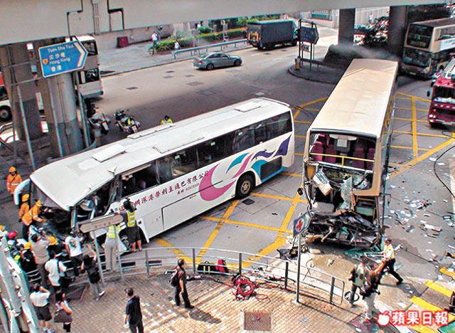 案發於今年7月10日早上約9時半,被告余榮柱(46歲)駕駛旅遊巴,沿九龍塘窩打老道南行。由於被告衝紅燈,從窩打老道右轉駛入歌和老街,左邊車頭猛撼一輛九巴車頭,導致被告本人、九巴司機及兩車共11名乘客受傷。