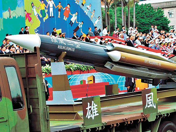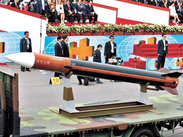 中共在十.一進行大閱兵,展示國防實力後,台灣總統馬英九前日秘密到訪屏東九鵬基地,觀看歷年規模最大的導彈演練,包括由中科院自行研製、射程3,000公里,不但覆蓋大陸華北、華中、華南大部份重要城市,甚至可遠至西北甘肅的中程導彈。