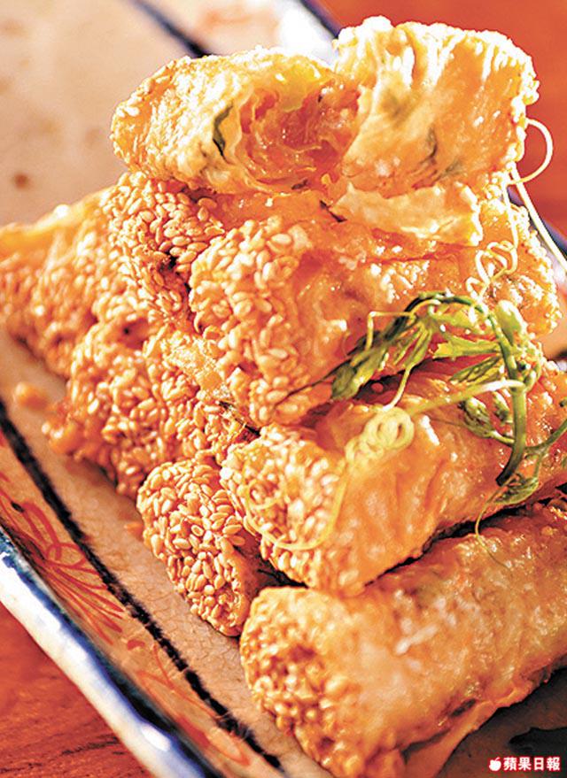 蟹粉加入雞湯同熬,再以皮蛋、腐皮裹起來炸,鬆脆香口,汁液充足。