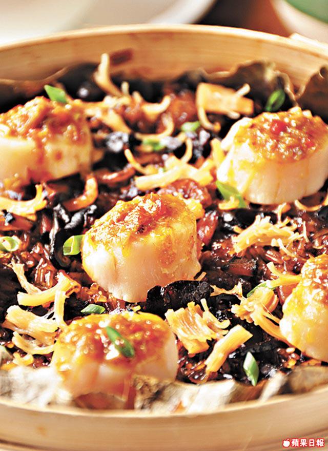 蟹粉拌糯米放於荷葉內蒸,放上鮮帶子及瑤柱,啖啖海鮮精華。