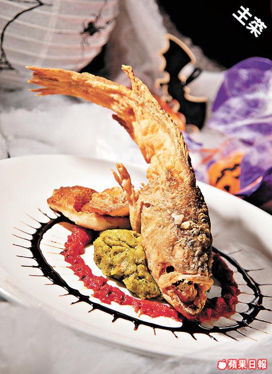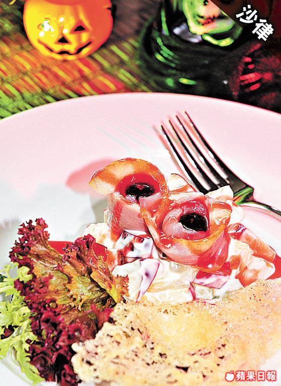 果然是全城哈囉喂,就連意大利咖啡店老字號CaffeVergnano1882都趁萬聖節湊熱鬧,於10月30及31日推出四道菜的哈囉喂大餐,包括前菜南瓜湯、芝士沙律和甜品,主菜有三款揀,燴羊膝的造型像佈滿鮮血的腳板,炸香的鱸魚像水潭中的怪魚,還有巫婆墨魚闊條麪。現凡提前預約還有九折優惠。