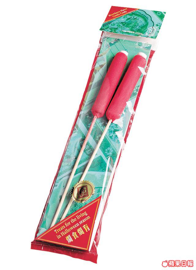 紅彤彤的蠟燭是草莓味道的糖果棒,質感頗為脆口,帶香濃草莓味,愛甜食者必食。