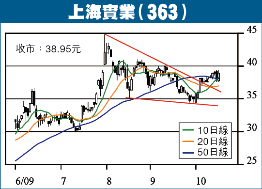 上海實業(363)重組醫藥業務已達成協議,消息視作正面,股價於反覆後昨日開始有表現,報升2.6%。