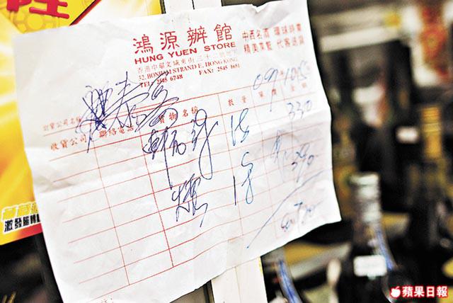 「識飲酒的人,便識來辦館買酒。」因為辦館有的是舊酒。「現在馬爹利、VSOP及白蘭地也不賣舊酒,若賣舊酒誰買新酒?」一次偶然機會,Anson在貨倉找到幾十支1996年的法國Lafite:「不得了,1996年是好年份,雖然這是SecondWine,屬次一等的貨色,網上仍賣$3,200一支,如果是FirstWine,大陸炒價是每支$80,000!」全盛期,鴻源有十個夥計,因位置近大笪地平民夜總會,人人買支酒便走去大牌檔,而且:「還出租麻雀,連麻雀板每天$10!」現在只剩四至五個夥計,最老資格的阿叔回憶:「七十年代,最多台灣人來買酒,因為台灣酒稅勁,人人買幾十支,倒入大木桶當豉油入境,到步才入樽;現在,一般街坊多買$300至$500的酒,日、韓客人愛買中國米酒;外國人喜愛三蛇酒,買回去嚇朋友。」最經典是:「一天,有個大陸客坐直升機從澳門來港,一口氣掃了三十支酒,還要我派夥計搬酒過澳門。」夥計也坐直升機:「哈哈,只是坐船。」