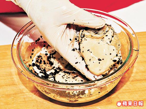 用粗鹽輕輕力省蠔的表面,之後要用水徹底冲乾淨,否則蠔會好鹹,影響味道。