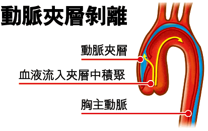 動脈夾層多發生在胸及腹主動脈,患者若缺血時間過長,可引致內臟及下肢缺血,造成器官壞死。流入假腔的血液更可形成主動脈瘤,一旦血壓過高,更可引致血管瘤破裂,併發大出血等嚴重症狀。04年本港便有逾300人因主動脈血管瘤及動脈夾層死亡。