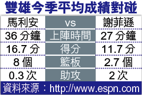 謝菲遜及馬利安打法均實而不華,同可司職小前鋒的兩人得分本錢充足,防守能力亦強橫。綽號「TheMatrix」的馬利安運動能力極強,今季刮光頭的他在上周五便成功凍結湖人後衞拜恩,此舉令「德國槍」奴域斯基可更集中進攻,令小馬的攻守職務變得分明。