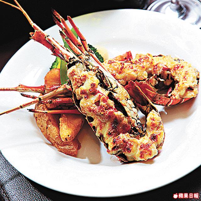 大隻龍蝦面層鋪上巴馬臣及水牛芝士,入口有淡淡芝士鹹香,龍蝦肉鮮嫩。