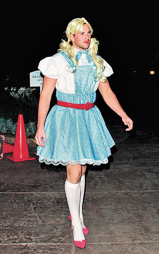 爛蒲名媛ParisHilton每年都會在萬聖節搞派對,昨日在洛杉磯舉行的派對中,她與奀星男友DougReinhardt齊以童話小女孩的裝扮亮相,昂藏6呎2吋的Doug扮成《綠野仙蹤》的主角桃樂絲(Dorothy),梳孖辮兼穿上粉紅色高踭鞋,一於核突當有趣。至於自稱以童話扮相示人的Paris,繼續酥胸半露,但她扮演甚麼童話的主角,卻連自己也說不出。