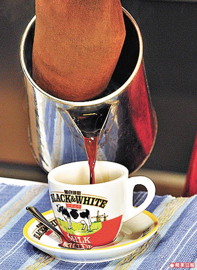咖啡粉11/2杯、滾水2壺、紅茶葉90克、淡奶/砂糖各適量