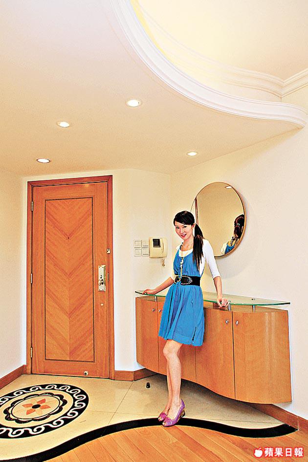 整體裝修風格屬舊式,亦已見部份老化,但勝在平實自然。大門玄關位鋪弧形雲石地磚,配襯同樣為弧形線條假天花,圓形燈槽及吊燈,尚有多盞射燈,營造富層次視覺效果,旁邊牆身還有玻璃層架,可擺放更多飾物美化空間。客廳已造好液晶體電視牆架及接線位,只須再加小型地櫃即可成為家居影音空間。廚房浴室設施為原裝,保養一般。