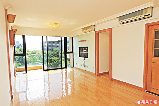由於近山易有蚊患,屋主已於廳房窗戶裝上防蚊網。全屋鋪設淺色牆紙,花紋簡潔耐看。單位原裝已設有冷氣槽位及室外分體機位,方便更換空調。