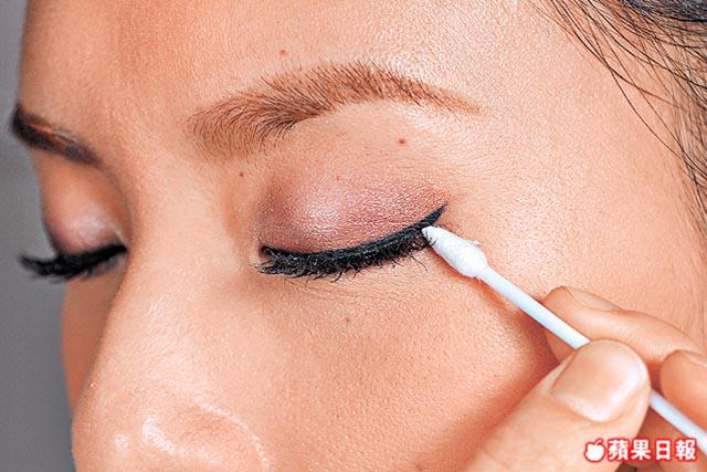 2.如果對畫黑眼線不太熟練的人可預備尖頭棉花棒,以便畫後由眼角往前修飾不夠尖的位置。
