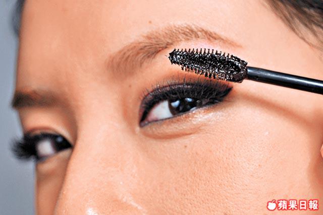 3.利落眼線要配上濃密睫毛才好看,所以建議多塗兩層睫毛液,想保持睫毛往上翹,可在睫毛根部稍停再往上拉。