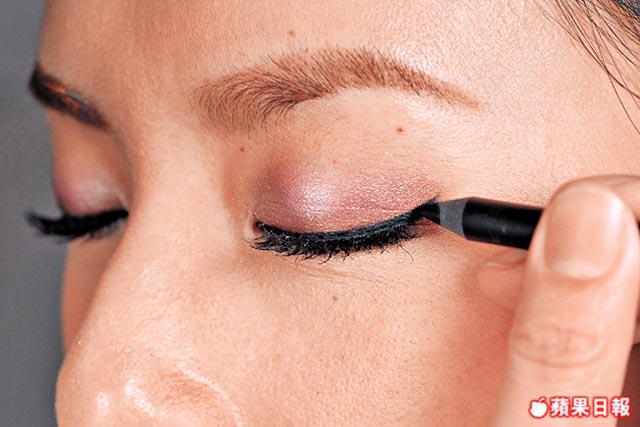1.畫黑眼線時,線條要保持流暢,尤其尾位要慢慢向上剔,尖位才夠漂亮。