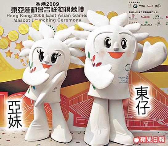 「東仔」與「亞妹」是香港第5屆東亞運動會吉祥物,由梁伯強及毛沛畿先生共同創作的,並以獅子及火作為創作元素,從而體現香港人「獅子山下」的拼搏互助精神,以及「火」的靈活多變特質。