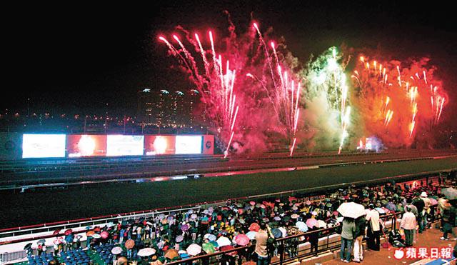 【本報訊】馬會125周年紀念賽馬日總算天公造美,於第八場開始雨勢才漸轉頻密,但仍不減馬迷熱情,十場賽事後既有馬票抽獎儀式,又有歌神許冠傑及歌后容祖兒獻唱,繼而以煙火滙演作為壓軸節目,馬迷逗留至此才徐徐散去。整個紀念賽日氣氛,並未因冷鋒及驟雨有所減退。