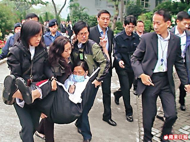 「女長毛」雷玉蓮昨午有樣學樣,身穿貼有要求特首及高官下台標語的黑色長袍進入禮賓府參觀,當她坐在大廳門口的梯級時,卻被在場保安人員及警方阻止,指她阻礙其他市民,要求她離開但被拒絕,事件擾攘一輪後,數名女警將她抬走,並禁止她再進入禮賓府。女長毛稱並無違法,「有乜理由抬我走唔畀我入返去?」