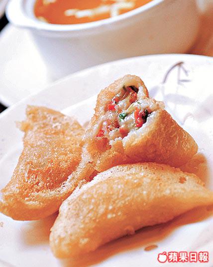 煎得香口鬆化的粉果點雞湯吃,湯鹹得來有韭黃清香,吃起來不覺太鹹和口渴。