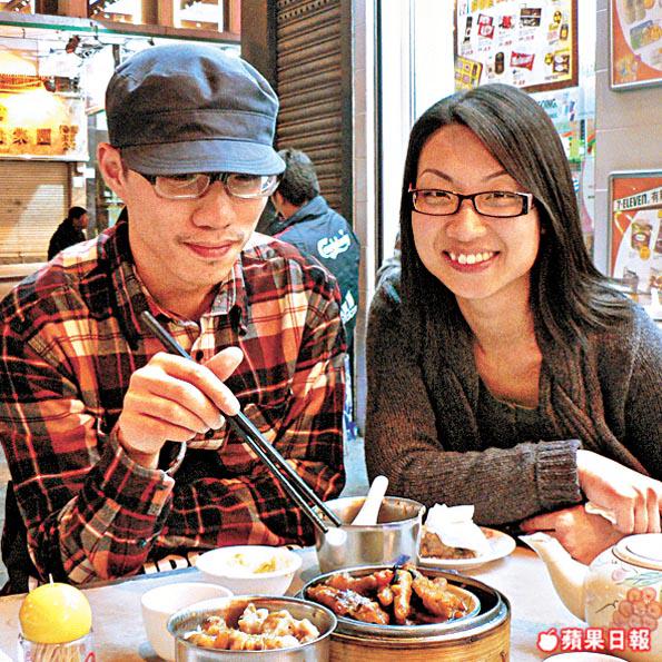 邦(左)&Yan:住在附近,見很多人來吃點心便來試。Yan叫了鳳爪、雞扎,邦就揀蝦餃和燒賣。