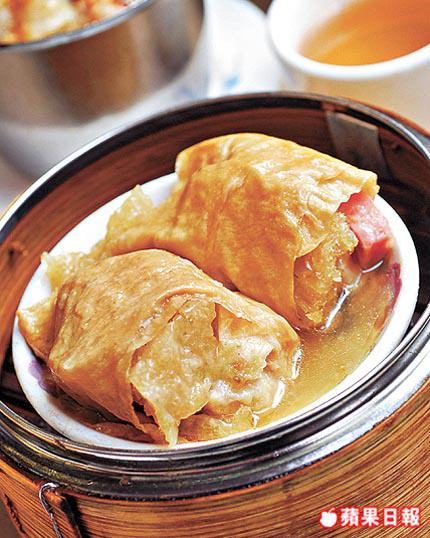 薄皮面軟滑帶少鹹,有雞髀菇、秀珍菇和竹笙釀在裏面,尤其雞髀菇最煙韌多汁。