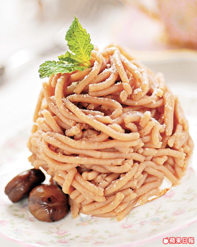 經典法式甜品蒙布朗(MontBlanc),先做鬆軟的海綿蛋糕,上面鋪忌廉與厚厚的栗子茸,入口香甜。造形看似複雜,其實所需用具簡單,用上現成的栗子茸,在家亦輕易做到。