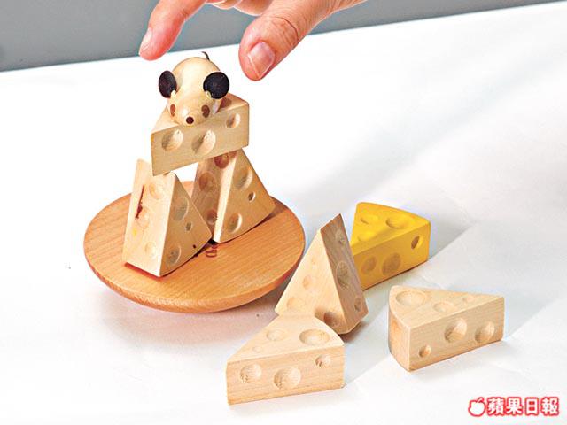 半圓底盤已難平衡,加上三角形的芝士積木,要在左搖右擺下將芝士叠好,令小老鼠放到最頂實有一定難度。
