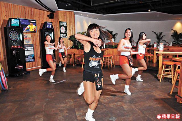 女僕雖可愛,但穿着美式啦啦隊制服的美眉,身形比女僕更顯曲線!白背心、熱褲、絲襪加白襪波鞋和長直髮,大部份也是操流利英語的大學生,絕對有樣有學歷!這間源自美國佛羅里達州的餐廳,以原木裝修呈現美國邁亞美沙灘的laid-back氣氛,更會不停播放體育節目,賣點當然是一班波濤胸湧又唱又跳的女大學生!每隔半小時她們都會作跳舞表演,音樂一響起,個個放下手上menu,隨着餐廳內的閃燈勁跳,人客拍手歡呼,投入的可以加入跳埋一份!看着她們不停彈跳,我終於頂唔順……流鼻血啦!唔好心邪!只因餐廳招牌菜「911雞翼」實在辣得令我招架不住!餐廳食物貫徹美式supersize份量,五款醬汁的水牛雞翼、巨型漢堡、剝剝蝦等都是必食!